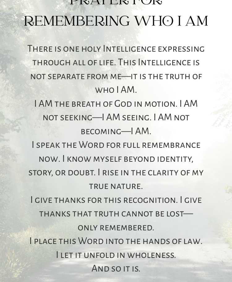 This prayer calls you back to your origin. It speaks to the truth beneath every role, every identity, every story—and restores you to your I AM.
